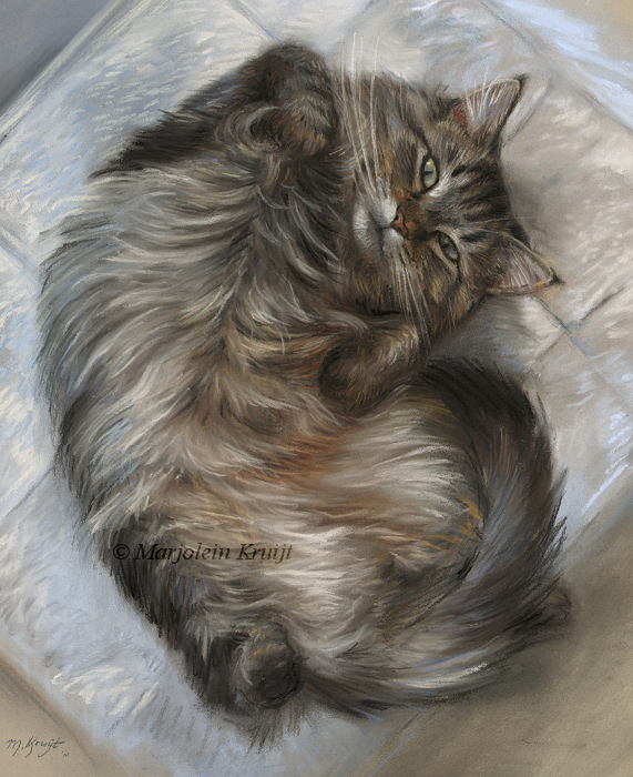 'Maine Coon rolling', 35x45 cm, pastel painting (sold) [Prints available]