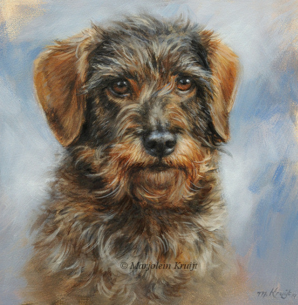 'Wire-haired dachshund'- portrait, 20x20 cm, oil painting (sold/commission)