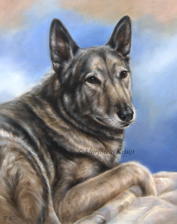'Laekense shepherd dog'- Dax, portrait painting 24x18cm oil on panel (sold/commissioned)