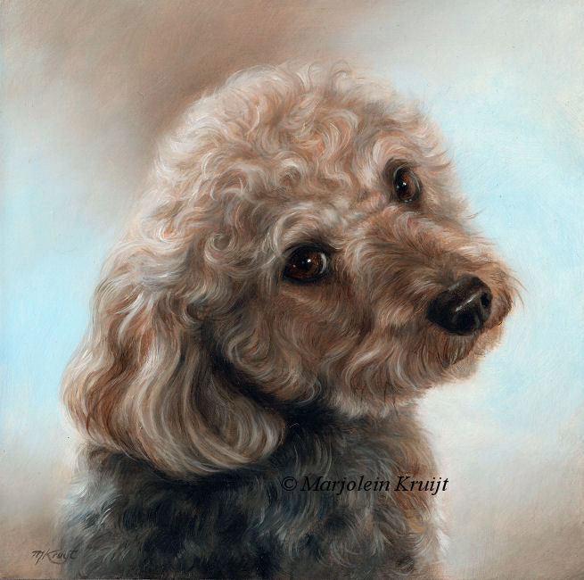 'Miniature Poodle' - Feelix, 20x20cm, oil painting (portrait commission / sold)