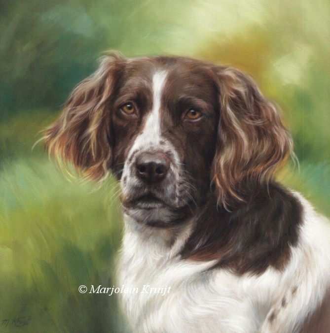 'Dutch Partridge dog' - Gaby, 30x30 cm, portrait in pastel (commission/sold)
