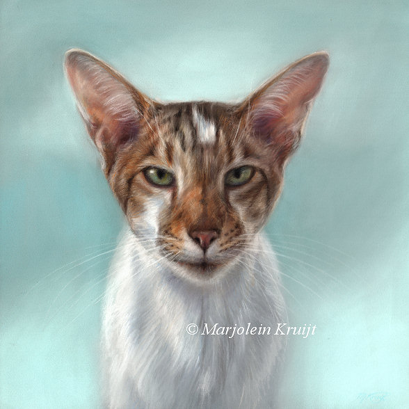 'Dirk', 30x30 cm pastel portrait oriental shorthair (sold)