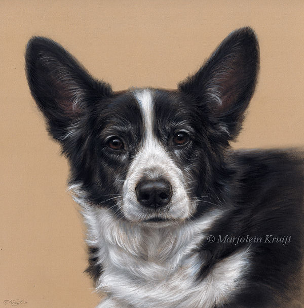 'Oban'-Welsh corgi Gardigan. 30x30cm portrait in pastel (sold)