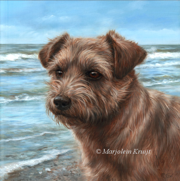 'Norfolk Terrier'- Pepper, petportrait 30x30cm painting in oil (sold)