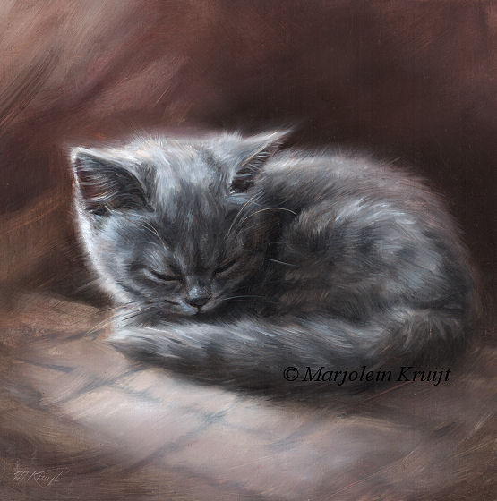 'Sleeping beauty'- European shorthair kitten, 20x20cm, oil painting (for sale)