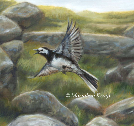 !['Sunlit foxgloves'-[close-up] white wagtails on Dartmoor UK, 80x80 cm, oil on canvas (for sale)](https://www.marjoleinkruijt.com/wp-content/uploads/2022/10/kwikstaartje-vogel-vliegend-schilderij-kwikstaart-jong-dartmoor-kunst.jpg)