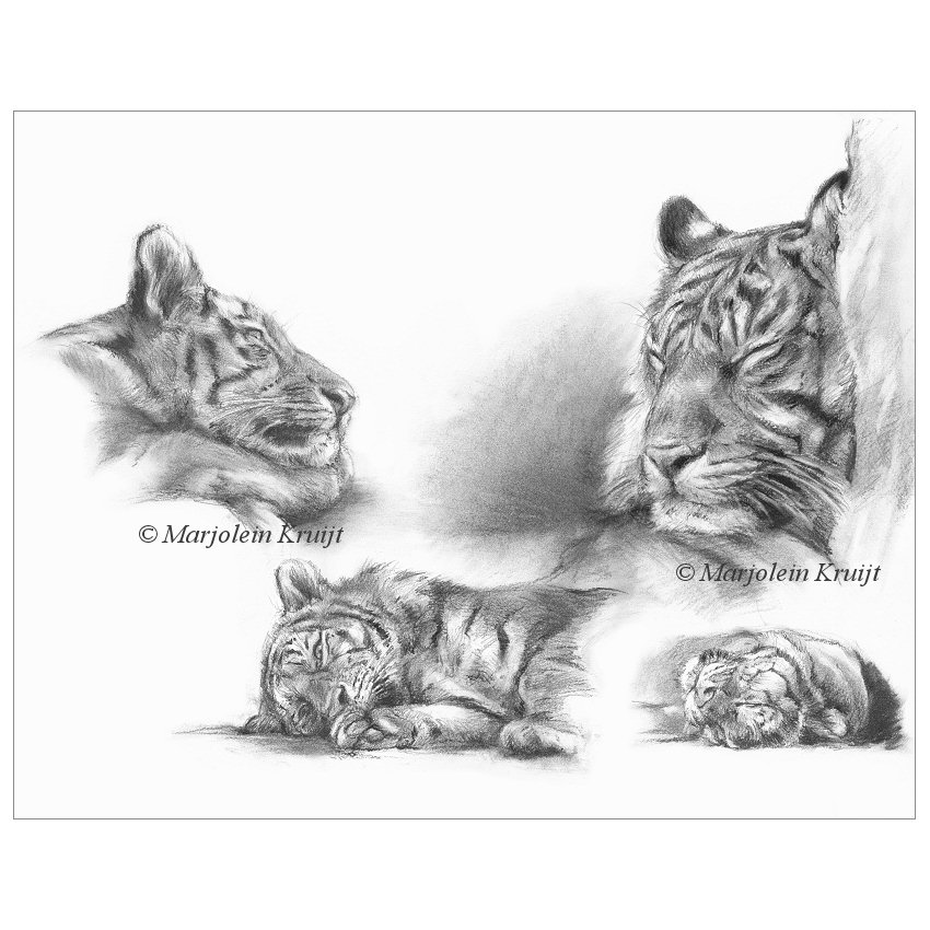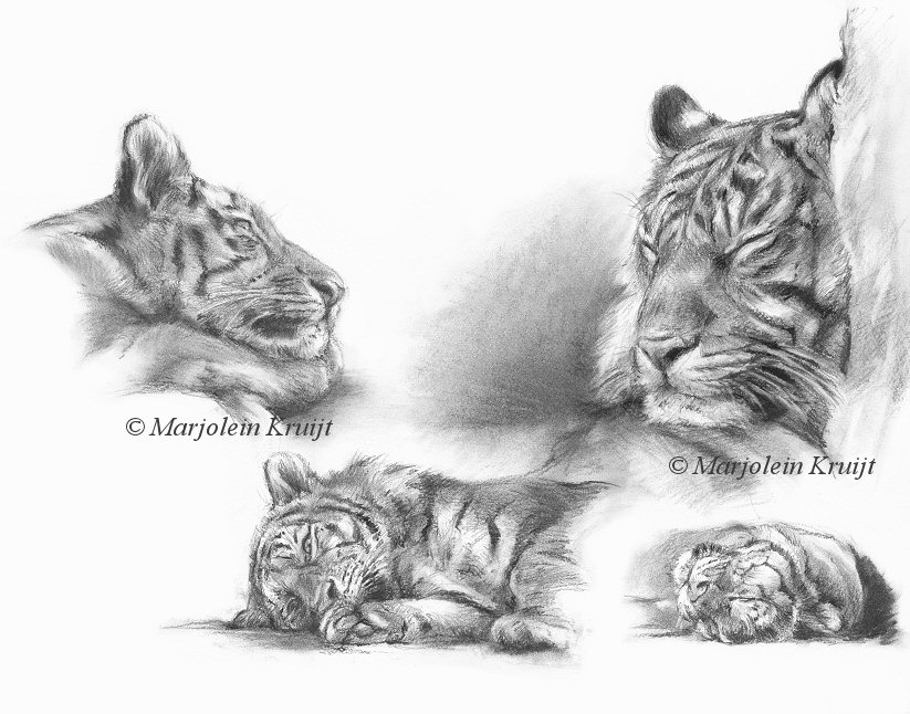 Available artwork of tigers by artist Marjolein Kruijt: ‘Tigers’, 50×60 cm, Charcoal drawing